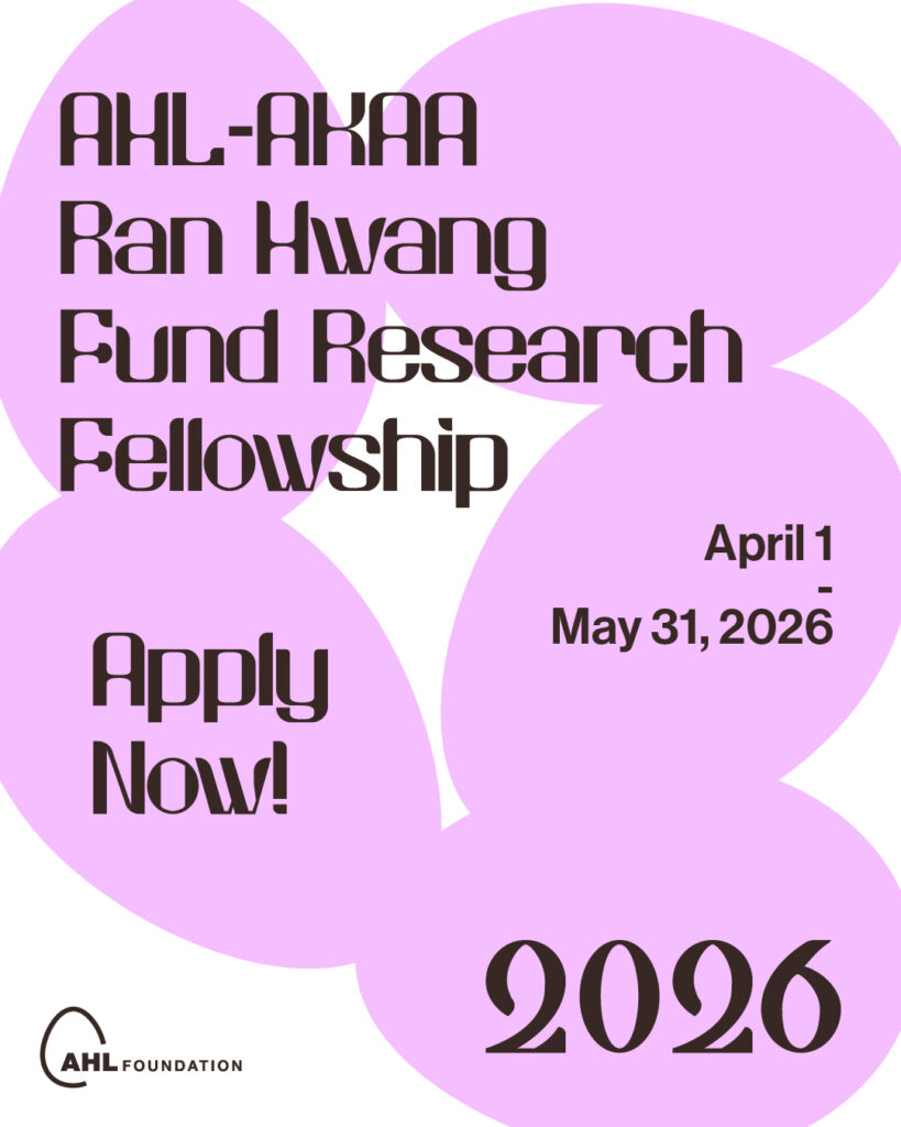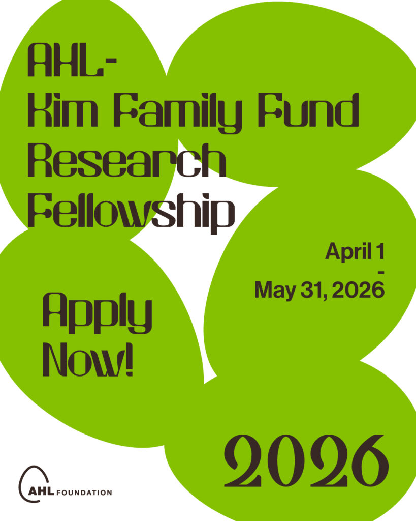 The AHL–Grace Charity Foundation Research Fellowship is an annual one-year fellowship open to art historians, researchers, and curators with an interest in researching and archiving the activities of artists of Korean heritage. The selected fellow will contribute to the development of the Archive of Korean Artists in America (AKAA) as part of the AHL Foundation’s mission to recognize and support the accomplishments of talented Korean artists working in the United States.